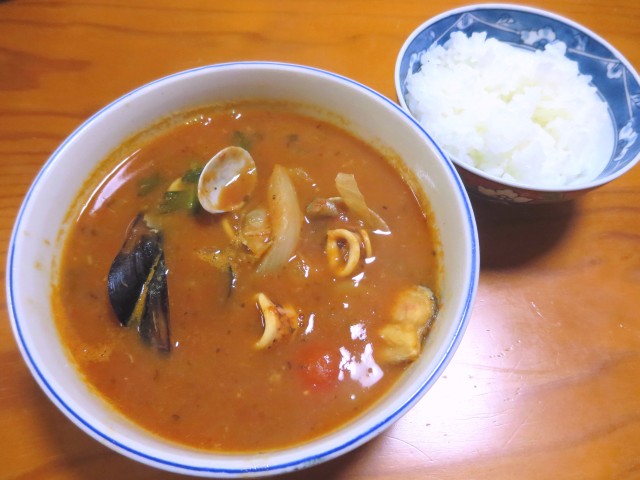 ↑夜ご飯。チョッピーノスープ続き・ご飯。