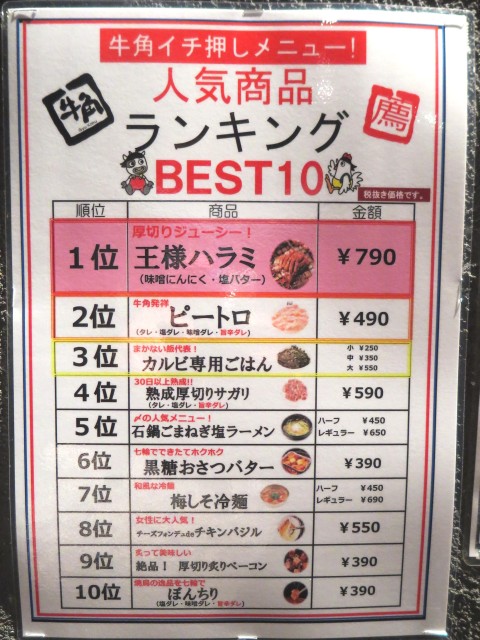 牛角イチ押しメニューというのが貼ってあった。