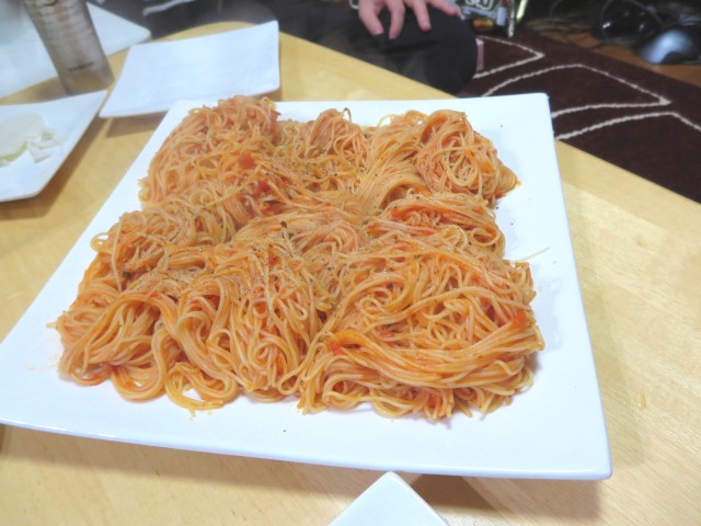 ↑細い麺のトマトソースパスタ。チーズ風味うまうま。