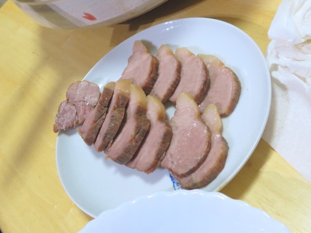 ↑夫の人特製☆煮豚。コンフィみたいな作り方で。