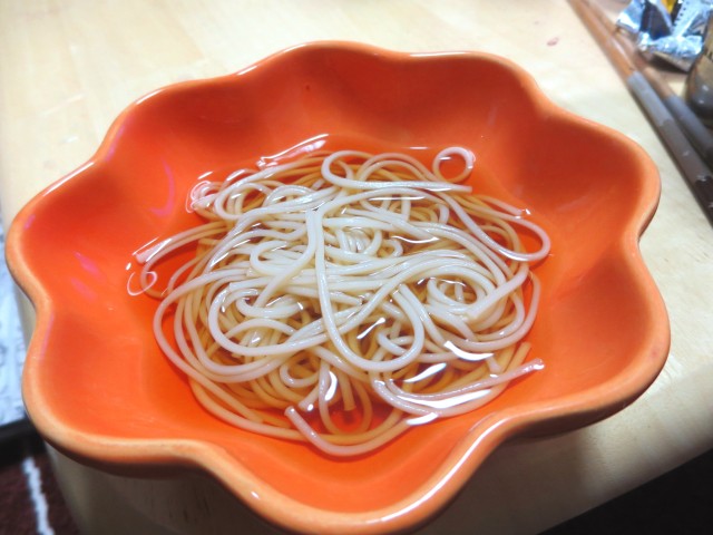 ↑年越しうどん。細いけどコシがある。アゴだしのつゆ美味。