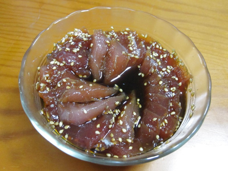 醤油・昆布つゆ・みりん・チューブしょうが・ごま。