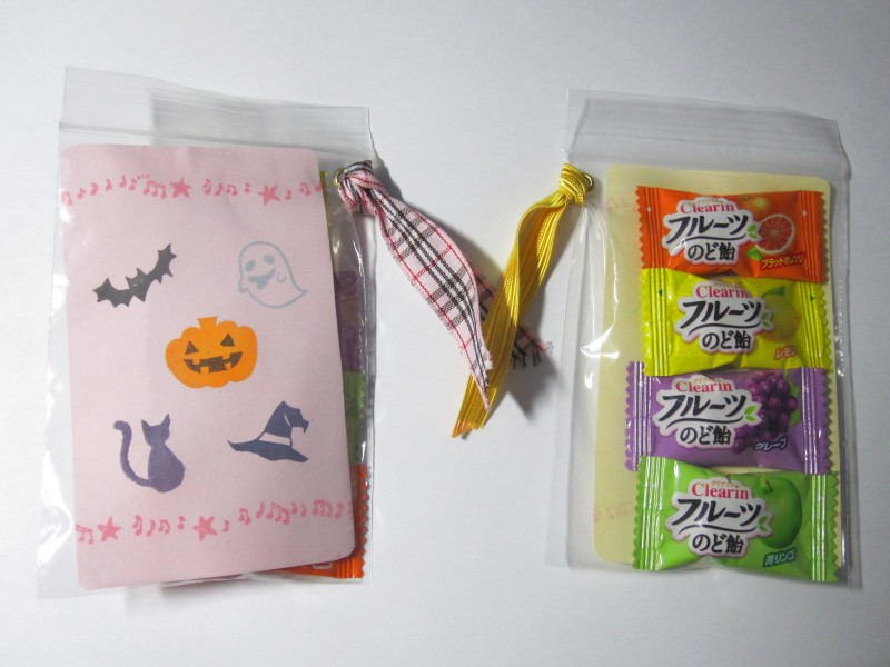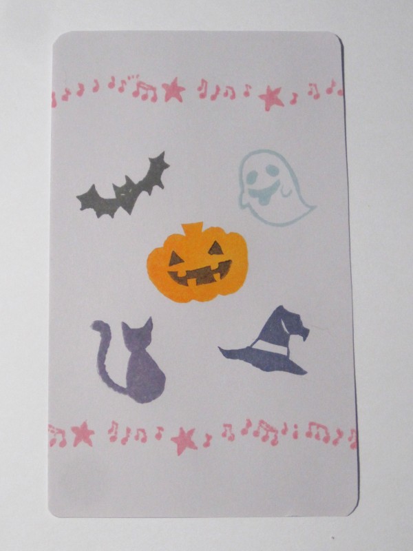 ↑台紙。ハロウィンっぽいイラストを消しゴムはんこで押した。