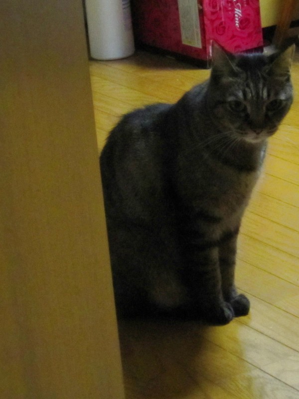 いつの間にか来て、はす部屋のドアの陰から覗く、さっちゃん。