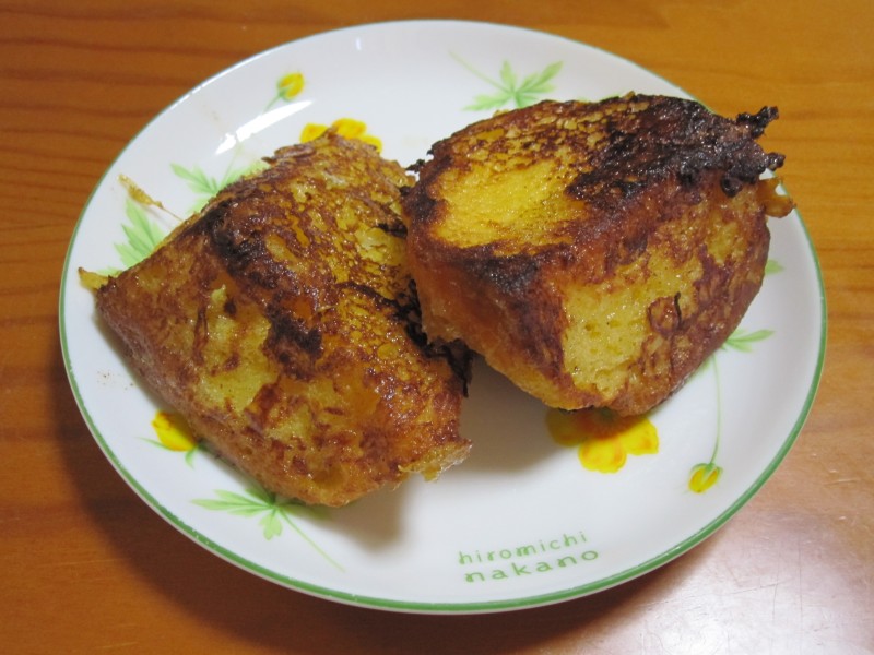 夫の人が焼いて、切ってくれたんだけど、すんごい厚切り。