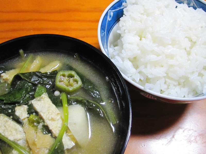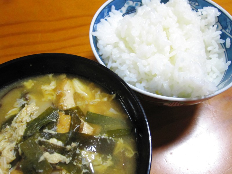 ↑夜ご飯。肉団子入り味噌汁・ご飯。