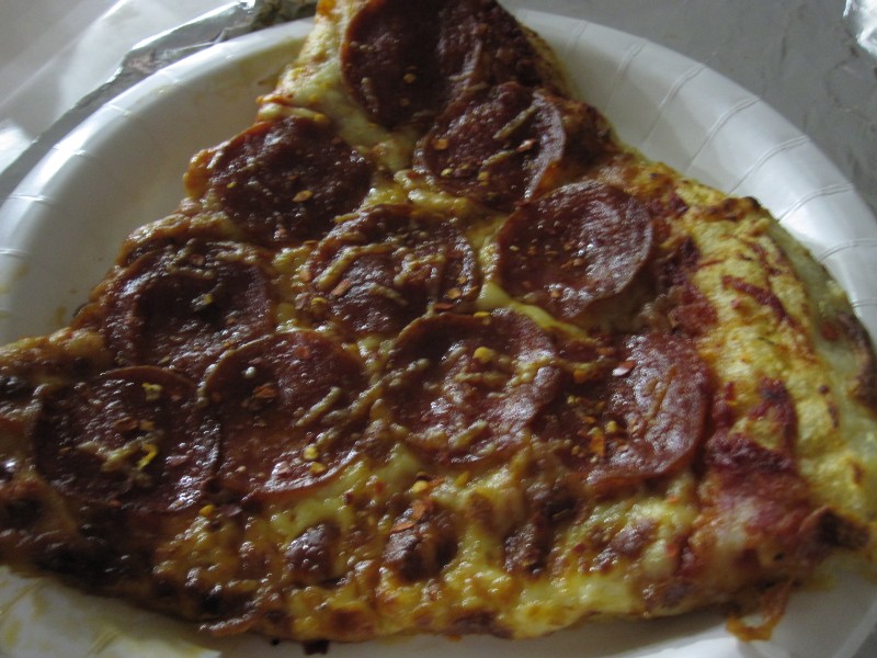 ↑薄暗いフードコートで、はすはピザを食べた。うまうま。