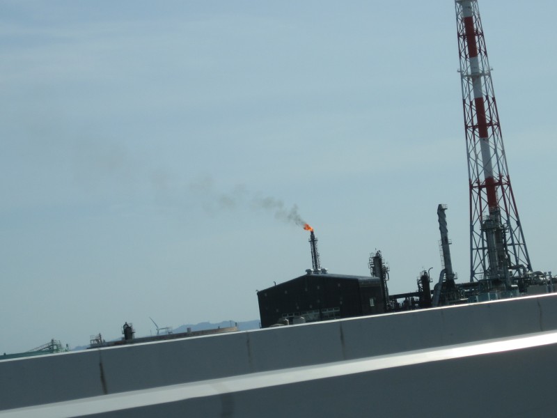 ↑途中、火を吹く工場の煙突?とか、