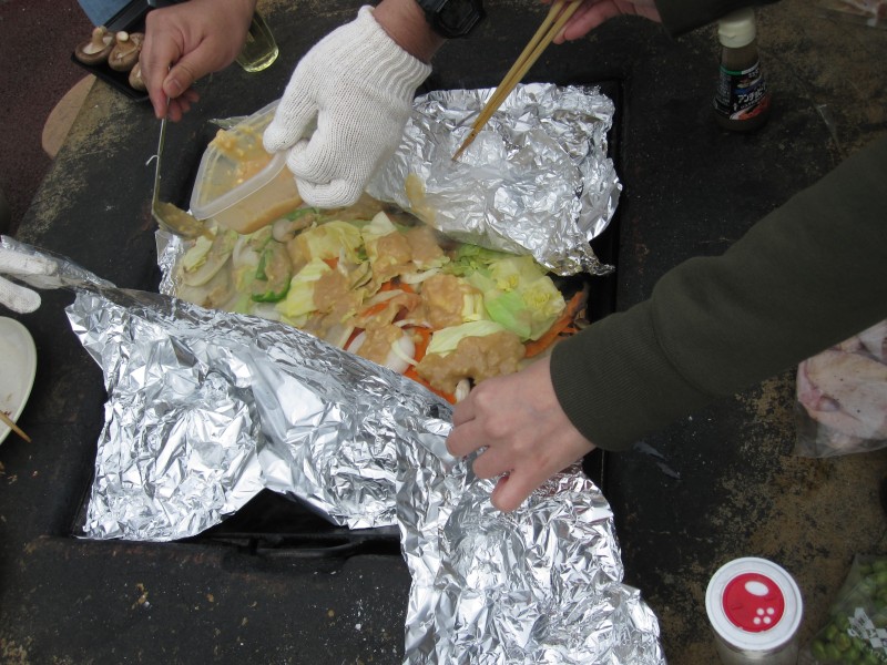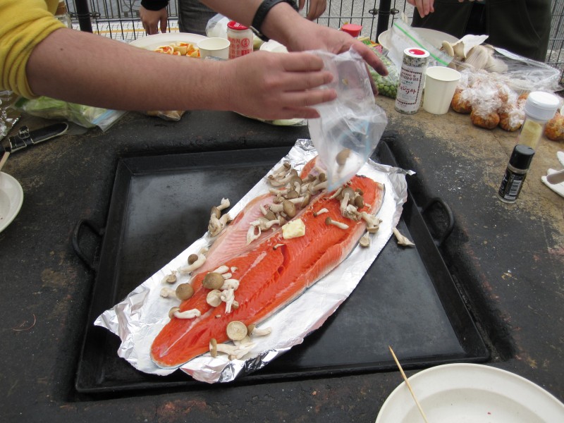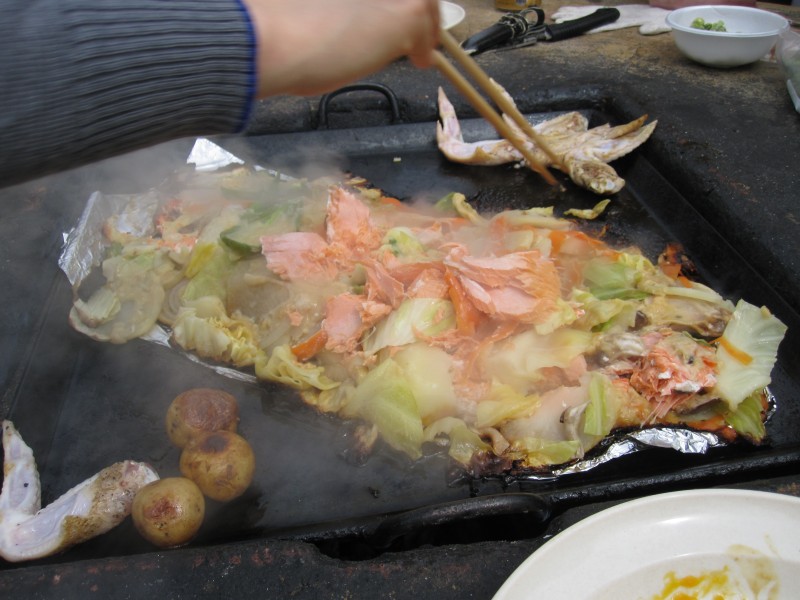 ↑しばらく待って、出来上がり!鮭のちゃんちゃん焼き。