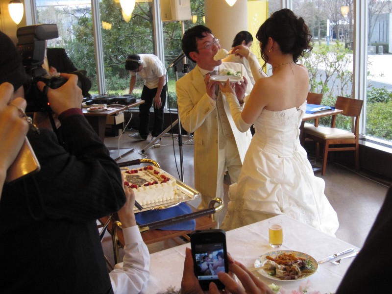 ↑ケーキ入刀の後の、ファーストバイト。