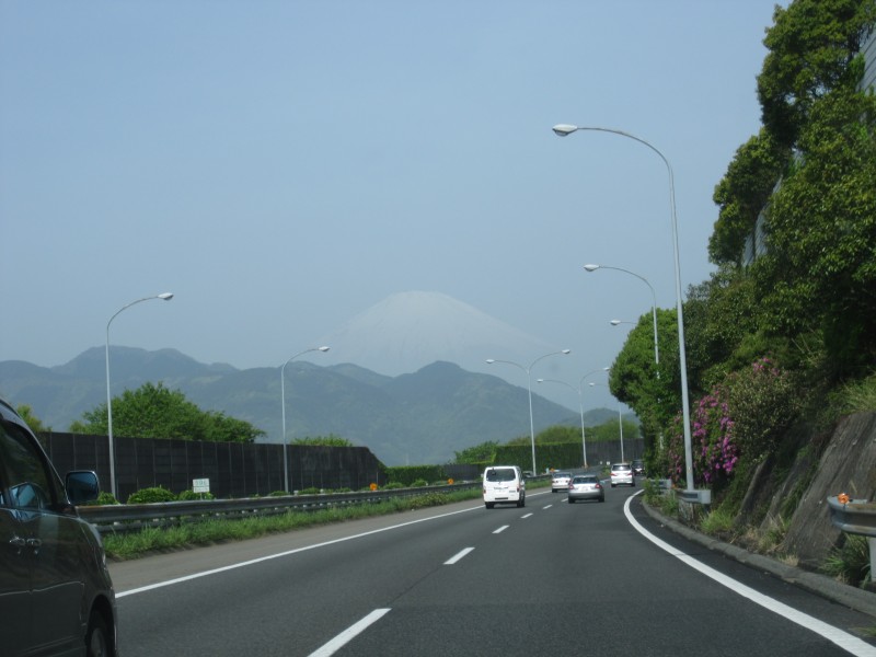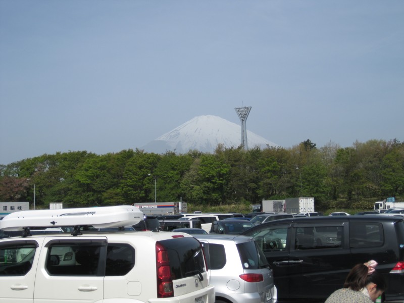 ↑足柄SAの駐車場から見た富士山。