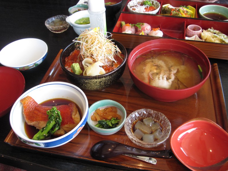 ↑夫の人は、海女丼に、金目鯛煮魚のセットをプラス。