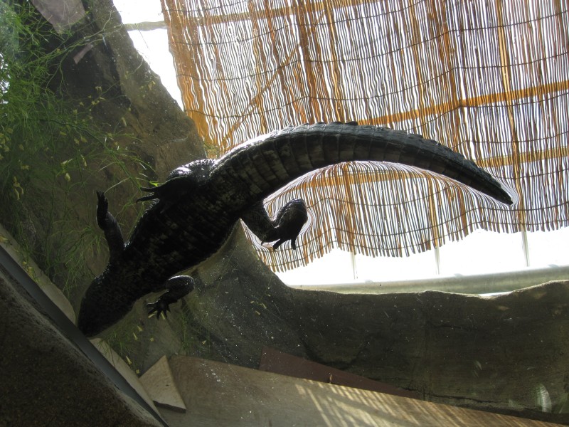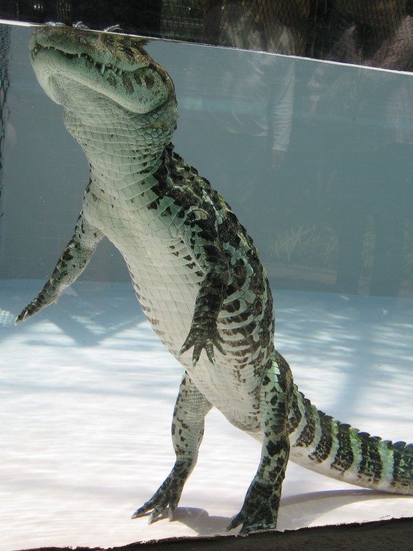 ↑ガラス越しに、ワニの水中の様子が見られる水槽もあった。