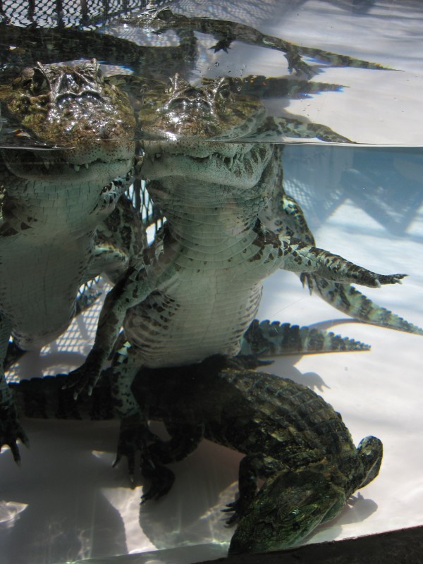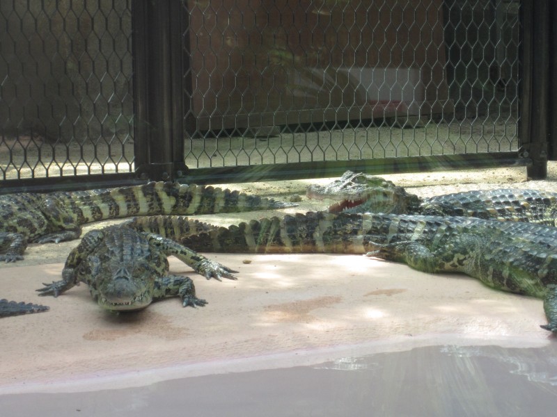 通路を進むと、水槽や池があちこちにあって、いろんなワニがいる。