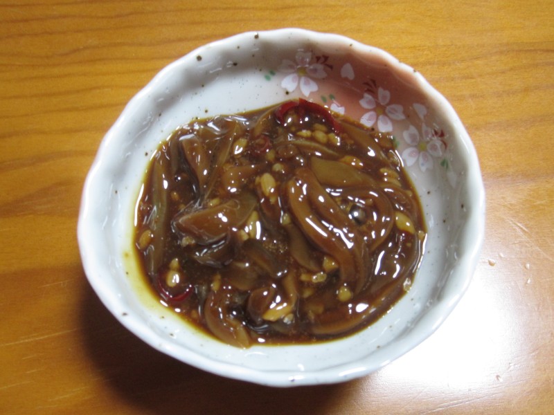 ↑お通しが、三升漬けだった。はすの好物。