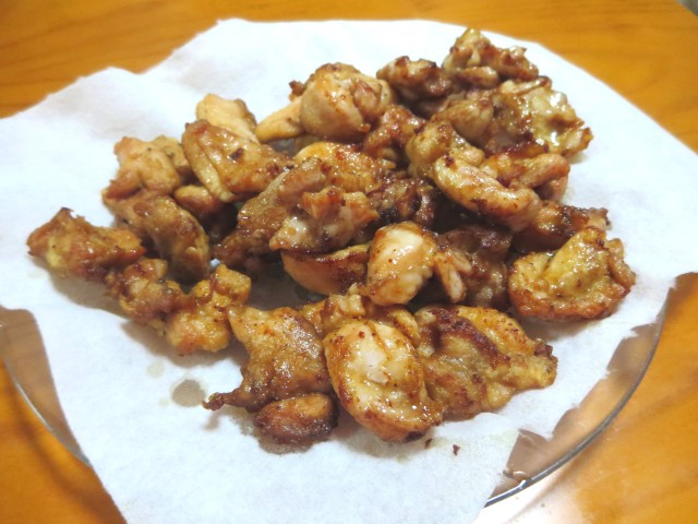 沼津で買ったほほ肉を、夫の人が唐揚げにしてくれた。