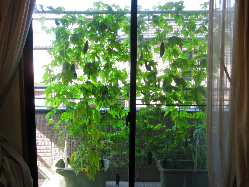 ゴーヤを通して網戸から入る風が、心なしか涼しく感じる!気がする。