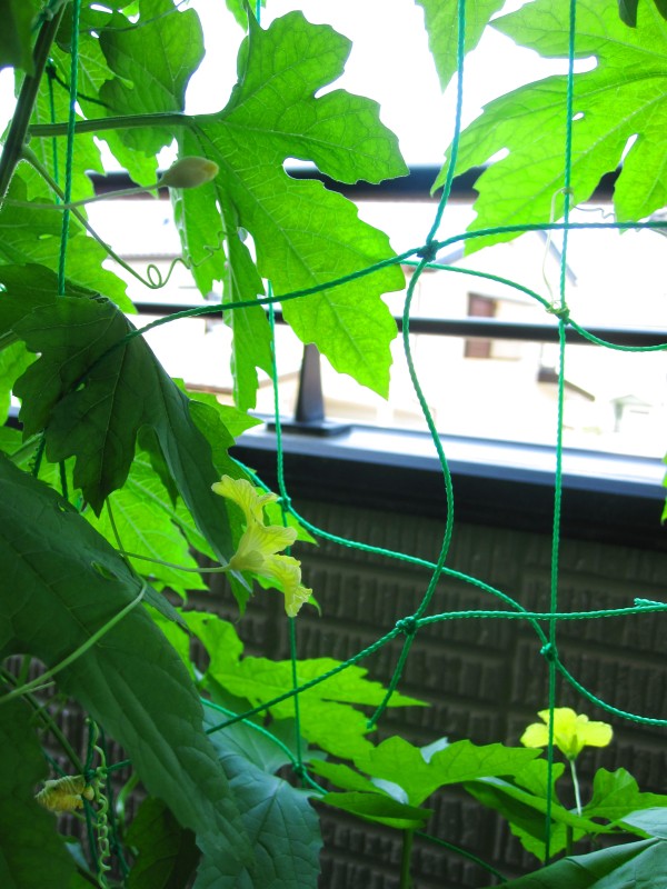 さかんにつるを伸ばして、いつのまにか見上げるくらい育っていた。