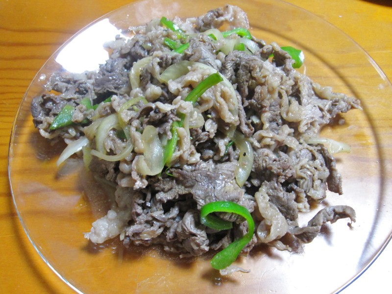 ↑豚肉の生姜焼き。夫の人が帰ってきてから焼いてもらった。