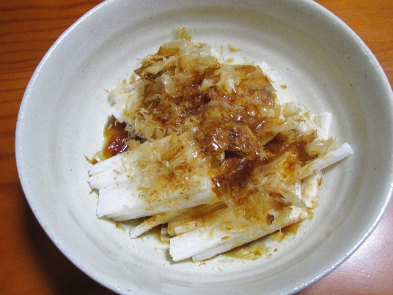 ↑長芋のおかかしょうゆあえ。混ぜる前。