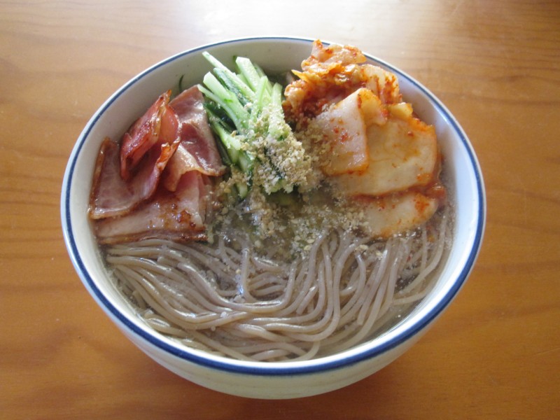 トッピングは昨日と同じ。ベーコン・キュウリ・キムチ・ごま。