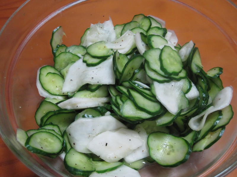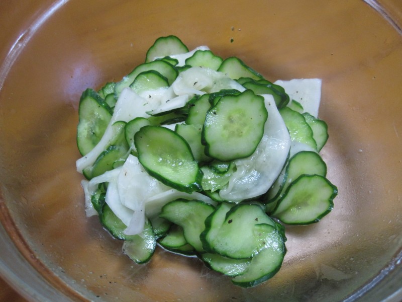 ↑かぶ&キュウリの浅漬け。昨日の残り。