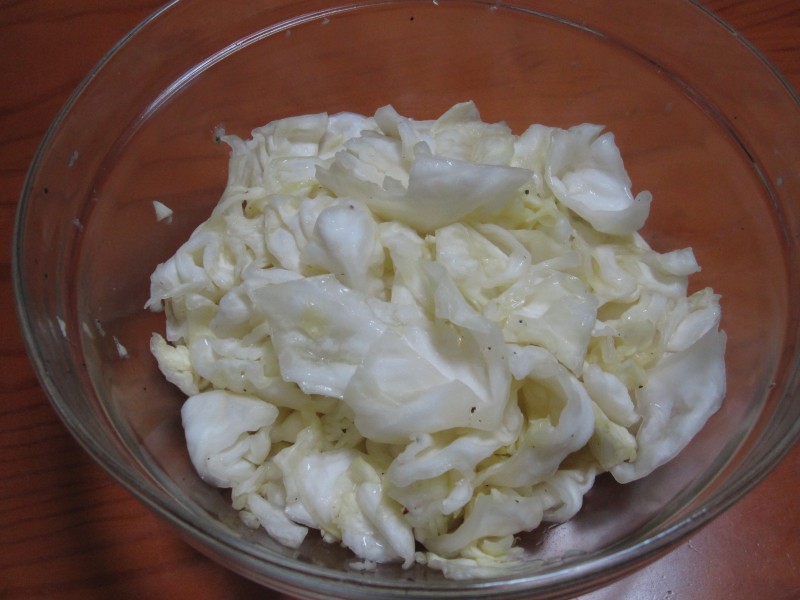 ↑キャベツと鶏肉の炒め物。しょうがをきかせて。うまうま。