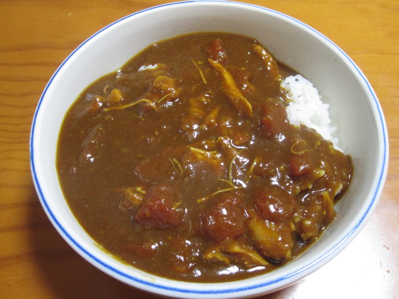 ↑夜ご飯も、カレー。煮込んだ鶏肉は、全部ほどけてしまった。