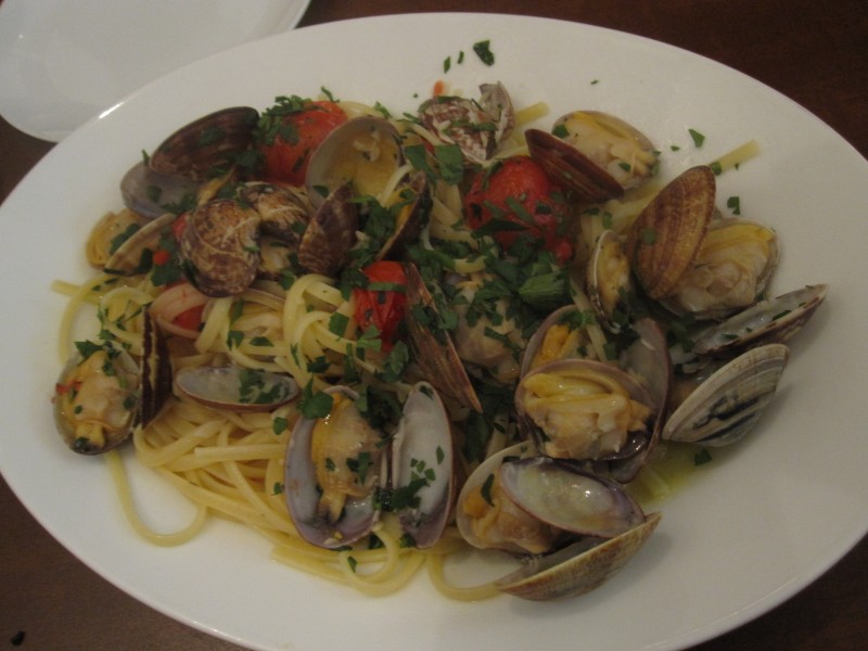 ↑あさりのパスタ。みんなに取り分けた後、はすは大皿のまま食べた。