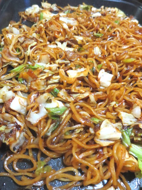 夜、夫の人が富士宮やきそばを作ってくれた。