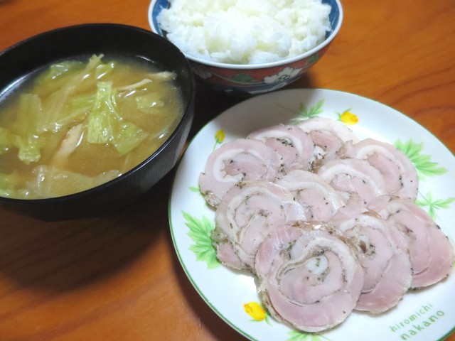 味噌汁は、ここ数日お気に入りの、キャベツ味噌汁。