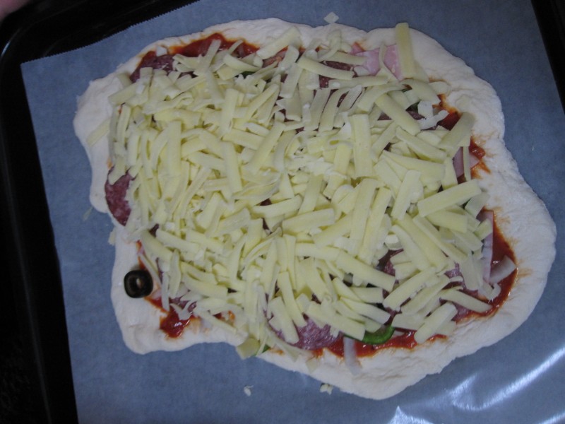↑ピザー。焼く前。チーズたっぷり。