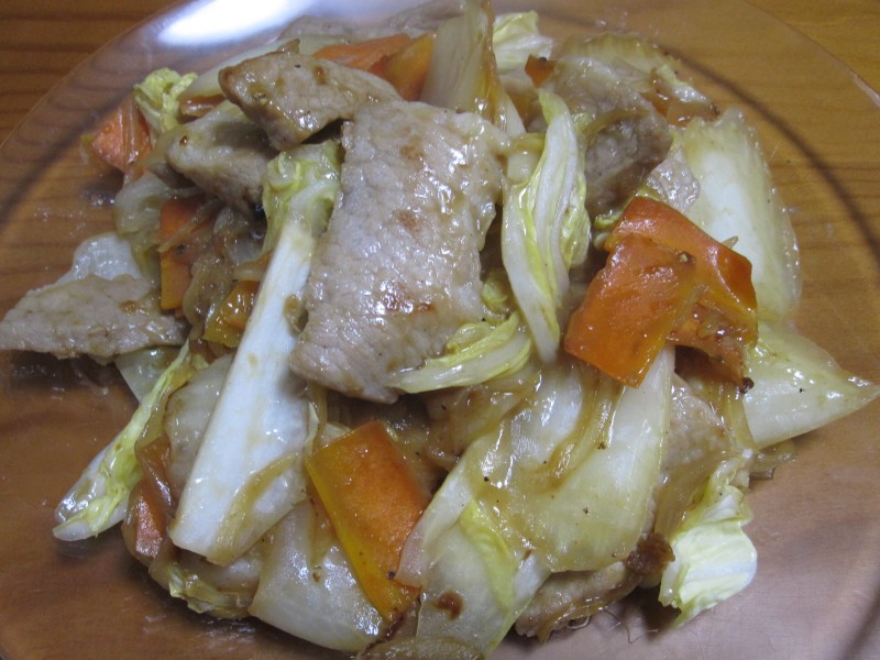 ↑豚肉と野菜の炒め物。