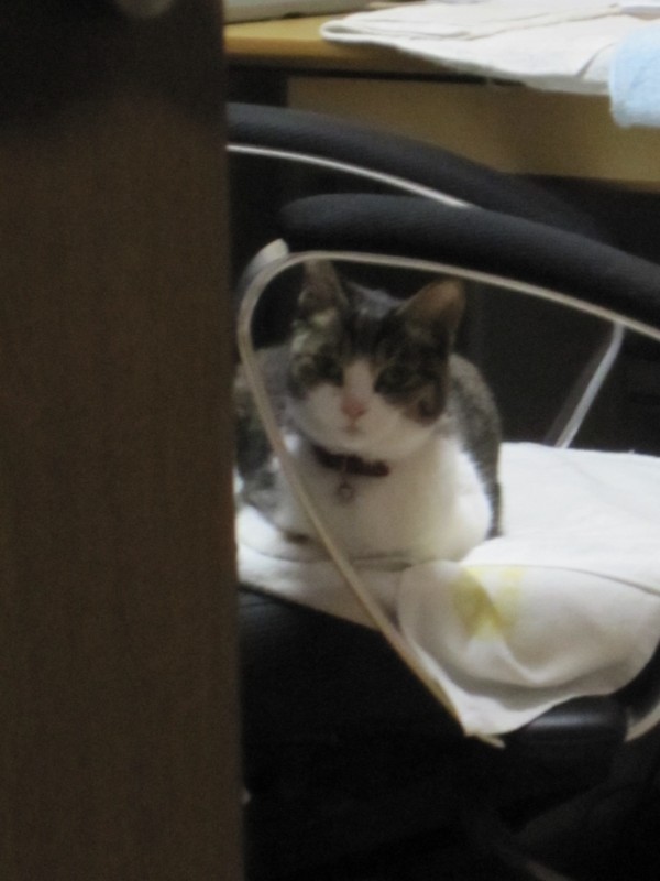 夫の人のパソコン椅子でくつろぐ、すーたん。