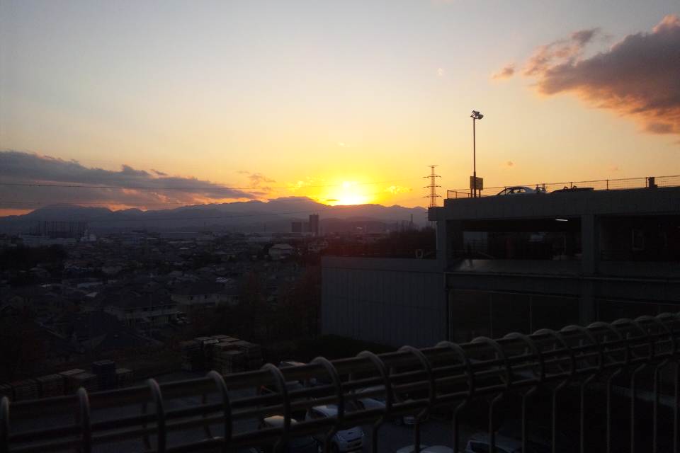 ↑駐車場からの夕日がキレイだったので、夫の人の携帯を借りて撮影。