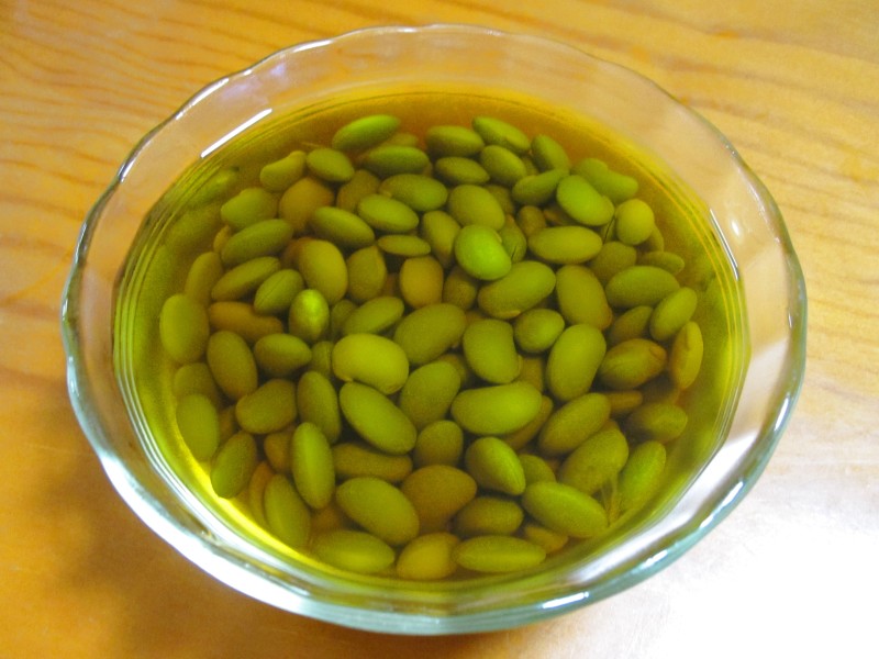 ゆでた枝豆を、さやから出して、一粒一粒薄皮もとって。