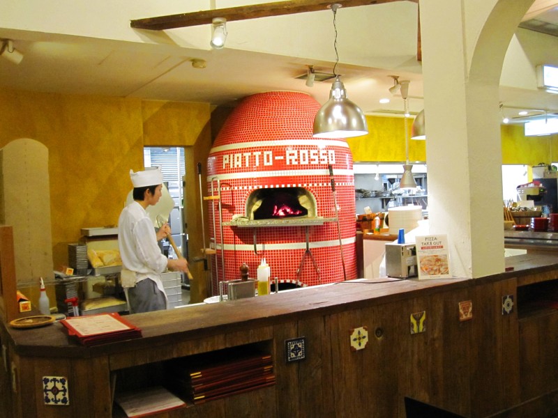 赤いモザイクタイルが貼ってあって、窯もかわいい。
