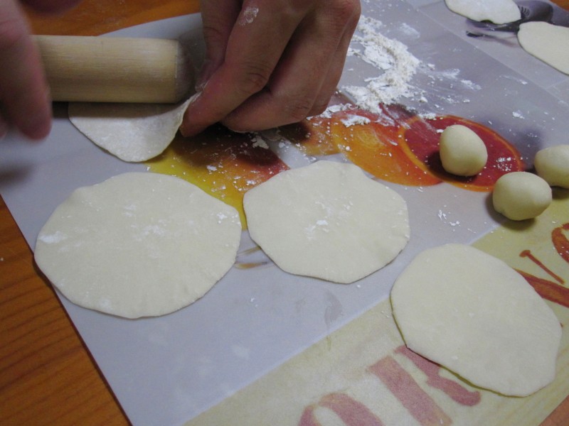 夫の人が、具の準備と、皮の生地をHBで作るのもやってくれた。