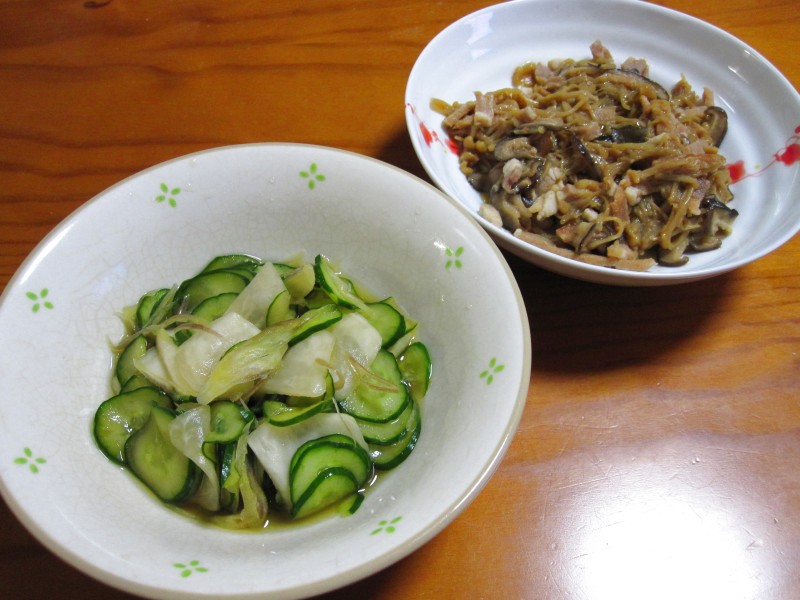 ↑浅漬け・肉キノコ。残り物。