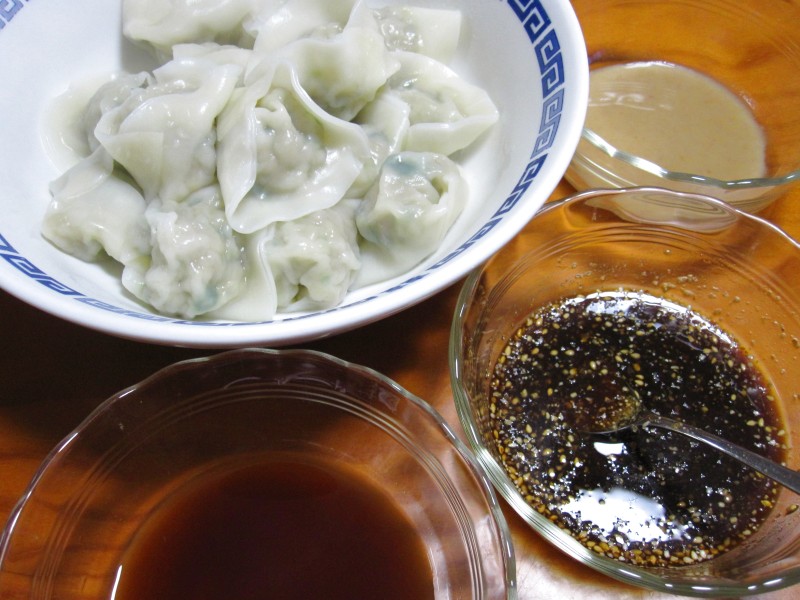 ぷりっとゆで上がった熱々の水餃子を、タレにつけて…うまうま!