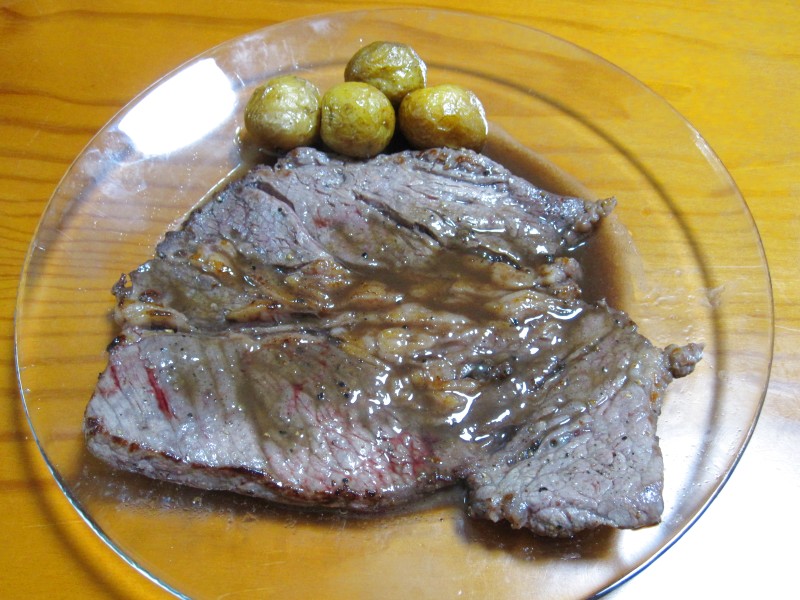夫の人が焼いてくれる肉は、うまいなぁ。