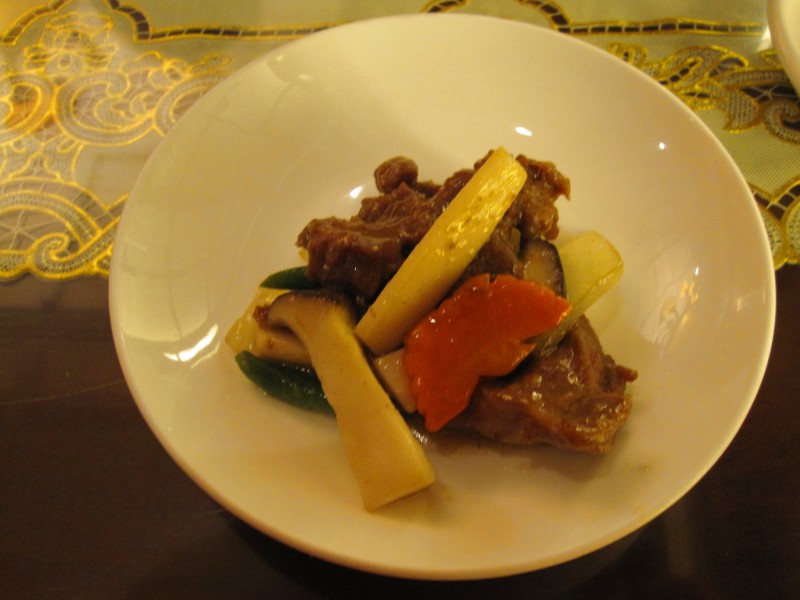肉を小さく切って、ソースをからめて、からめて、食べた。