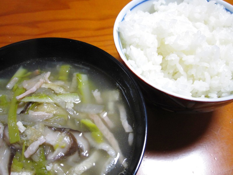 ↑夜ご飯。塩豚風味スープ・ご飯。