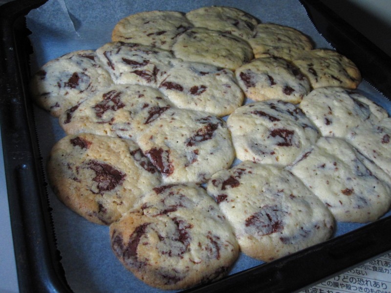 ↑チョコチップクッキー。生地を天板にスプーンで落として焼く。