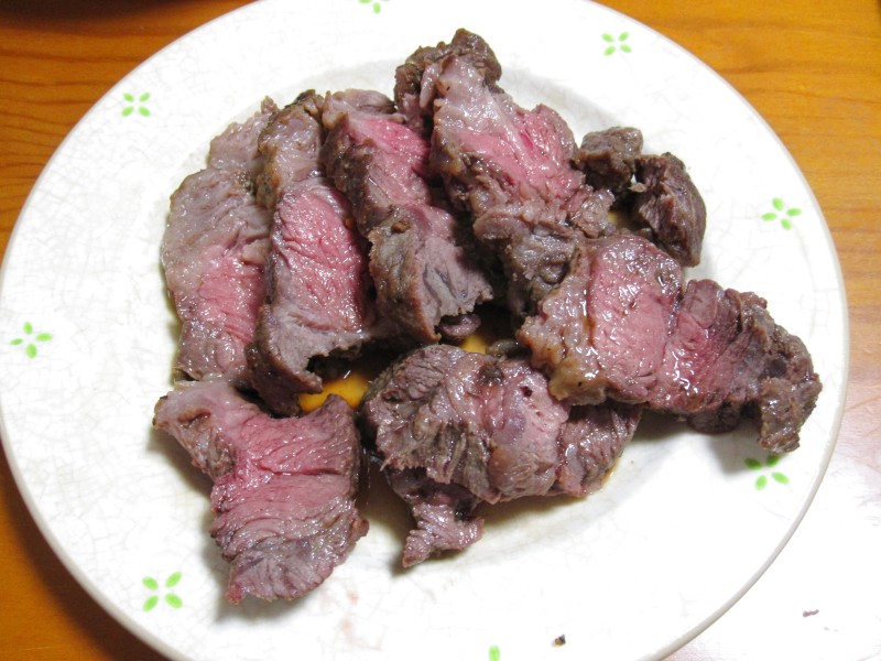 ↑牛肉を焼いたやつ。ゆずポンソースで。うまうま。
