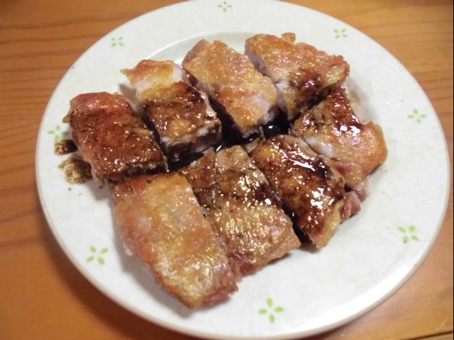 ↑鶏肉を焼いたやつ。カリっとうまうま。
