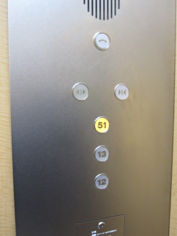 12階・13階・51階しか止まらないエレベーターに乗って行った。