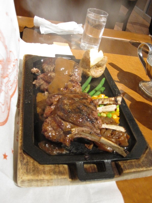 ↑骨付きラムとオリジナルハンバーグ。夫の人。