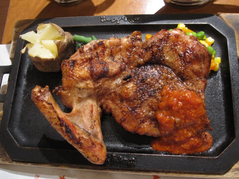 ↑バーベキューチキン骨付き600g、トマトソース。はす。