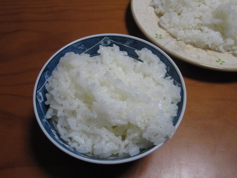↑ご飯。はすはお茶碗で。夫の人はお皿でライス。